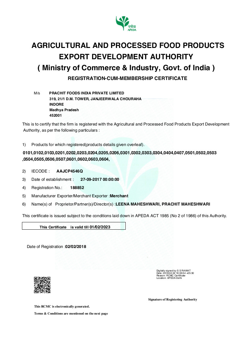 Prachit Foods is registered with ISO 9001:2015, ISO 22000:2005 with HACCP, FSSAI and APEDA. These certifications represent our genuine efforts to make every product and every technique in good favour of human and animal consumption.